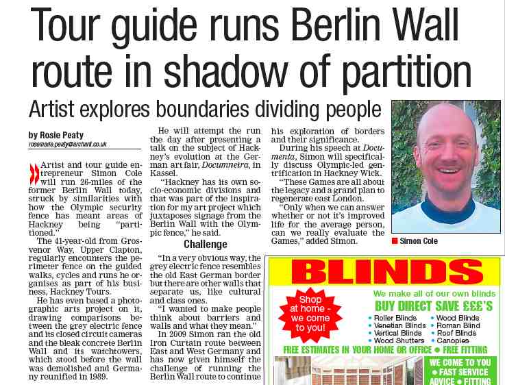 Hackney Gazette covered our Wall run last week in Berlin. It was partly about Berlin and the old German Democratic Republic, but it was also about Hackney. In 2009 Hackney Tours ran the former Iron Curtain with a team of ‘East’ and ‘West’ Germans to celebrate 20 years since the Wall fell (see Running the Berlin Wall).