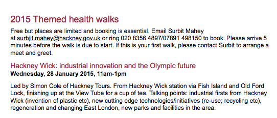 Thanks to some last minute cancellations, we still have several places on tomorrow’s Hackney Council walk around the wonder that is Hackney Wick. This guided tour – including art, social and industrial history & heritage – will show you why this very special alternative East London location by the Queen Elizabeth Olympic Park is well worth a visit.